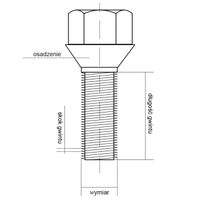 łeb nakrętki (powierzchnia przylegania do gniazda/osadzenia w otworze felgi) – parametr ten dobierz odpowiednio pod swoją felgę, zatem koniecznie sprawdź specyfikację,