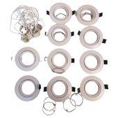 10 częściowy zestaw ramek montażowych GU10. W zakres dostawy wchodzi do każdej ramy montażowej również oprawka GU10, którą można łączyć z żarówką GU10 według własnego wyboru. Niezależnie od tego, czy LED czy halogen, można używać wszystkich żarówek o średnicy 50 mm. Zestaw 10 sztuk, okrągła ramka do zabudowy – w zestawie oprawka GU10 do 230 V, żarówki nie wchodzą w zakres dostawy. Pasuje do wszystkich żarówek o średnicy 50 mm, takich jak na przykład GU10 lub MR16 jako żarówki LED lub halogenowe Wymiary zewnętrzne: 90 mm – średnica wewnętrzna otworu: 50mm, głębokość montażu: 26 mm Możliwość obrotu o 30°, co umożliwia skierowanie światła w wybrany obszar lub obiekt. Zakres zastosowania: pokój dzienny, jadalnia, pokój dziecięcy, sypialnia, korytarz, kuchnia, garderoba, pomieszczenie gospodarcze. W zakres dostawy wchodzą: 10 x ramka LED do zabudowy (okrągła/matowa biała) 10 x oprawa GU10 z ceramiki. Specyfikacja: Marka: Allesgute Kolor: Biały Ilość: 10szt. Materiał: Wysokiej jakości metal Typ źródła światła: LED und Halogen Lampen Napięcie: 230 Wolty Kształt: Okrąg. 10 częściowy zestaw ramek montażowych GU10