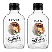 ZESTAW 10 sztuk butelek szklanych PIERSIÓWKA 100 ml, wykonanych z grubego szkła z nadrukiem I CYK! SETUNIA.
