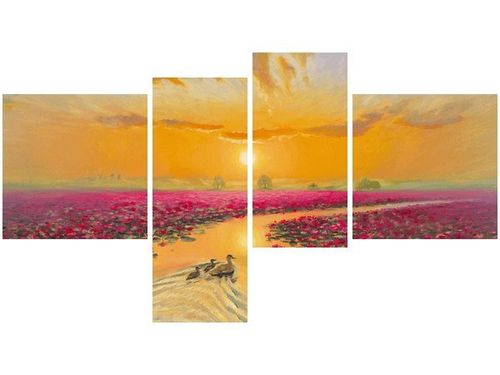 4. Obrazy nie posiadają klasycznej zewnętrznej ramy. Boki obrazu są zadrukowane i płótno jest montowane w taki sposób, że stanowi naturalną kontynuację motywu obrazu. Obrazy wieloelementowe, dzięki temu tworzą jedną całość. Szerokość zadrukowanego boku wynosi tyle samo ile grubość drewnianej ramy czyli 1,6cm.