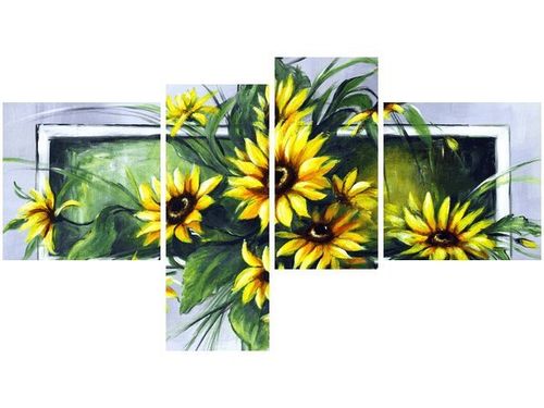 4. Obrazy nie posiadają klasycznej zewnętrznej ramy. Boki obrazu są zadrukowane i płótno jest montowane w taki sposób, że stanowi naturalną kontynuację motywu obrazu. Obrazy wieloelementowe, dzięki temu tworzą jedną całość. Szerokość zadrukowanego boku wynosi tyle samo ile grubość drewnianej ramy czyli 1,6cm.