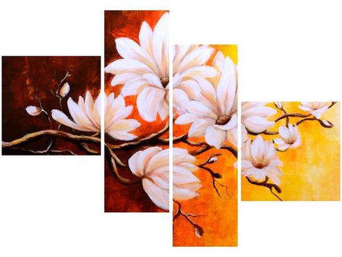 4. Obrazy nie posiadają klasycznej zewnętrznej ramy. Boki obrazu są zadrukowane i płótno jest montowane w taki sposób, że stanowi naturalną kontynuację motywu obrazu. Obrazy wieloelementowe, dzięki temu tworzą jedną całość. Szerokość zadrukowanego boku wynosi tyle samo ile grubość drewnianej ramy czyli 1,6cm.