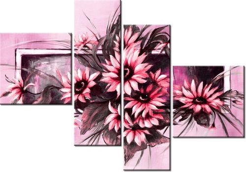 4. Obrazy nie posiadają klasycznej zewnętrznej ramy. Boki obrazu są zadrukowane i płótno jest montowane w taki sposób, że stanowi naturalną kontynuację motywu obrazu. Obrazy wieloelementowe, dzięki temu tworzą jedną całość. Szerokość zadrukowanego boku wynosi tyle samo ile grubość drewnianej ramy czyli 1,6cm.