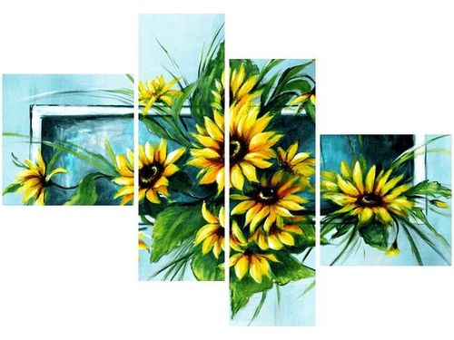 4. Obrazy nie posiadają klasycznej zewnętrznej ramy. Boki obrazu są zadrukowane i płótno jest montowane w taki sposób, że stanowi naturalną kontynuację motywu obrazu. Obrazy wieloelementowe, dzięki temu tworzą jedną całość. Szerokość zadrukowanego boku wynosi tyle samo ile grubość drewnianej ramy czyli 1,6cm.