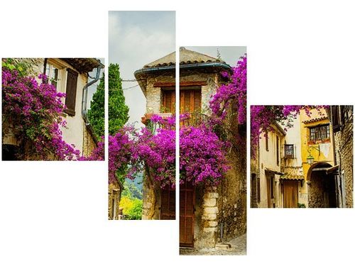 4. Obrazy nie posiadają klasycznej zewnętrznej ramy. Boki obrazu są zadrukowane i płótno jest montowane w taki sposób, że stanowi naturalną kontynuację motywu obrazu. Obrazy wieloelementowe, dzięki temu tworzą jedną całość. Szerokość zadrukowanego boku wynosi tyle samo ile grubość drewnianej ramy czyli 1,6cm.