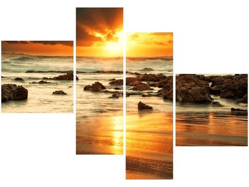 4. Obrazy nie posiadają klasycznej zewnętrznej ramy. Boki obrazu są zadrukowane i płótno jest montowane w taki sposób, że stanowi naturalną kontynuację motywu obrazu. Obrazy wieloelementowe, dzięki temu tworzą jedną całość. Szerokość zadrukowanego boku wynosi tyle samo ile grubość drewnianej ramy czyli 1,6cm.
