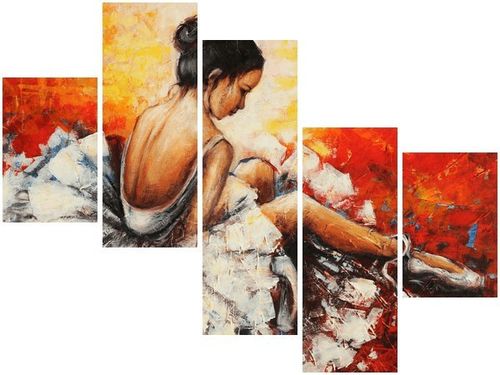 4. Obrazy nie posiadają klasycznej zewnętrznej ramy. Boki obrazu są zadrukowane i płótno jest montowane w taki sposób, że stanowi naturalną kontynuację motywu obrazu. Obrazy wieloelementowe, dzięki temu tworzą jedną całość. Szerokość zadrukowanego boku wynosi tyle samo ile grubość drewnianej ramy czyli 1,6cm.