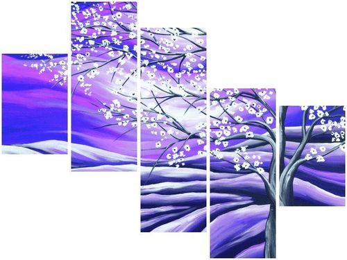 4. Obrazy nie posiadają klasycznej zewnętrznej ramy. Boki obrazu są zadrukowane i płótno jest montowane w taki sposób, że stanowi naturalną kontynuację motywu obrazu. Obrazy wieloelementowe, dzięki temu tworzą jedną całość. Szerokość zadrukowanego boku wynosi tyle samo ile grubość drewnianej ramy czyli 1,6cm.