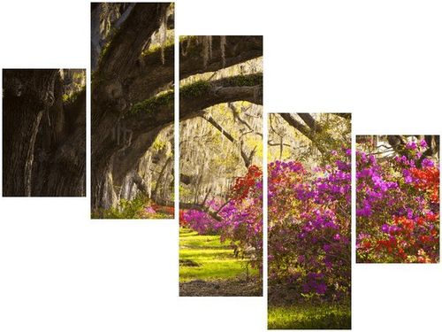 4. Obrazy nie posiadają klasycznej zewnętrznej ramy. Boki obrazu są zadrukowane i płótno jest montowane w taki sposób, że stanowi naturalną kontynuację motywu obrazu. Obrazy wieloelementowe, dzięki temu tworzą jedną całość. Szerokość zadrukowanego boku wynosi tyle samo ile grubość drewnianej ramy czyli 1,6cm.