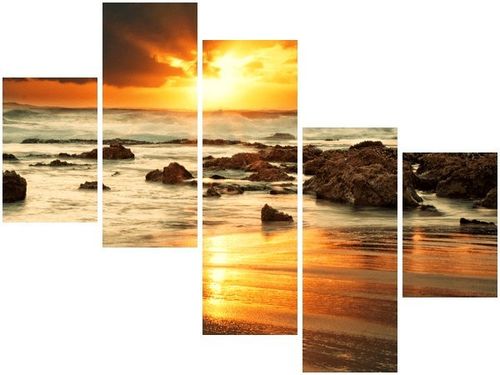 4. Obrazy nie posiadają klasycznej zewnętrznej ramy. Boki obrazu są zadrukowane i płótno jest montowane w taki sposób, że stanowi naturalną kontynuację motywu obrazu. Obrazy wieloelementowe, dzięki temu tworzą jedną całość. Szerokość zadrukowanego boku wynosi tyle samo ile grubość drewnianej ramy czyli 1,6cm.