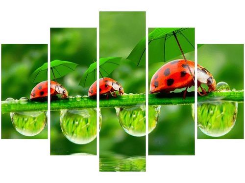 4. Obrazy nie posiadają klasycznej zewnętrznej ramy. Boki obrazu są zadrukowane i płótno jest montowane w taki sposób, że stanowi naturalną kontynuację motywu obrazu. Obrazy wieloelementowe, dzięki temu tworzą jedną całość. Szerokość zadrukowanego boku wynosi tyle samo ile grubość drewnianej ramy czyli 1,6cm.