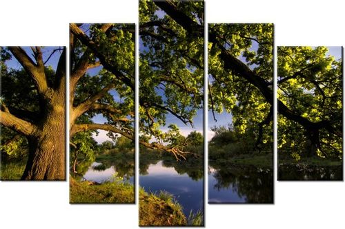 4. Obrazy nie posiadają klasycznej zewnętrznej ramy. Boki obrazu są zadrukowane i płótno jest montowane w taki sposób, że stanowi naturalną kontynuację motywu obrazu. Obrazy wieloelementowe, dzięki temu tworzą jedną całość. Szerokość zadrukowanego boku wynosi tyle samo ile grubość drewnianej ramy czyli 1,6cm.