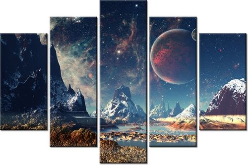 4. Obrazy nie posiadają klasycznej zewnętrznej ramy. Boki obrazu są zadrukowane i płótno jest montowane w taki sposób, że stanowi naturalną kontynuację motywu obrazu. Obrazy wieloelementowe, dzięki temu tworzą jedną całość. Szerokość zadrukowanego boku wynosi tyle samo ile grubość drewnianej ramy czyli 1,6cm.