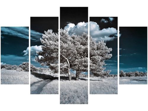 4. Obrazy nie posiadają klasycznej zewnętrznej ramy. Boki obrazu są zadrukowane i płótno jest montowane w taki sposób, że stanowi naturalną kontynuację motywu obrazu. Obrazy wieloelementowe, dzięki temu tworzą jedną całość. Szerokość zadrukowanego boku wynosi tyle samo ile grubość drewnianej ramy czyli 1,6cm.