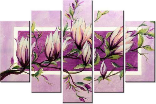 4. Obrazy nie posiadają klasycznej zewnętrznej ramy. Boki obrazu są zadrukowane i płótno jest montowane w taki sposób, że stanowi naturalną kontynuację motywu obrazu. Obrazy wieloelementowe, dzięki temu tworzą jedną całość. Szerokość zadrukowanego boku wynosi tyle samo ile grubość drewnianej ramy czyli 1,6cm.