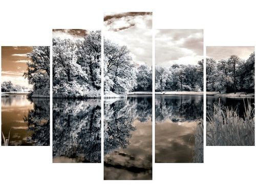4. Obrazy nie posiadają klasycznej zewnętrznej ramy. Boki obrazu są zadrukowane i płótno jest montowane w taki sposób, że stanowi naturalną kontynuację motywu obrazu. Obrazy wieloelementowe, dzięki temu tworzą jedną całość. Szerokość zadrukowanego boku wynosi tyle samo ile grubość drewnianej ramy czyli 1,6cm.