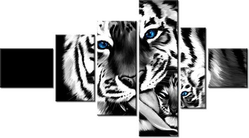 4. Obrazy nie posiadają klasycznej zewnętrznej ramy. Boki obrazu są zadrukowane i płótno jest montowane w taki sposób, że stanowi naturalną kontynuację motywu obrazu. Obrazy wieloelementowe, dzięki temu tworzą jedną całość. Szerokość zadrukowanego boku wynosi tyle samo ile grubość drewnianej ramy czyli 1,6cm.