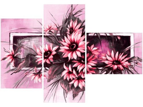 4. Obrazy nie posiadają klasycznej zewnętrznej ramy. Boki obrazu są zadrukowane i płótno jest montowane w taki sposób, że stanowi naturalną kontynuację motywu obrazu. Obrazy wieloelementowe, dzięki temu tworzą jedną całość. Szerokość zadrukowanego boku wynosi tyle samo ile grubość drewnianej ramy czyli 1,6cm.