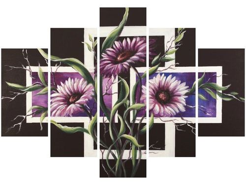 4. Obrazy nie posiadają klasycznej zewnętrznej ramy. Boki obrazu są zadrukowane i płótno jest montowane w taki sposób, że stanowi naturalną kontynuację motywu obrazu. Obrazy wieloelementowe, dzięki temu tworzą jedną całość. Szerokość zadrukowanego boku wynosi tyle samo ile grubość drewnianej ramy czyli 1,6cm.