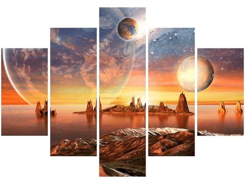 4. Obrazy nie posiadają klasycznej zewnętrznej ramy. Boki obrazu są zadrukowane i płótno jest montowane w taki sposób, że stanowi naturalną kontynuację motywu obrazu. Obrazy wieloelementowe, dzięki temu tworzą jedną całość. Szerokość zadrukowanego boku wynosi tyle samo ile grubość drewnianej ramy czyli 1,6cm.