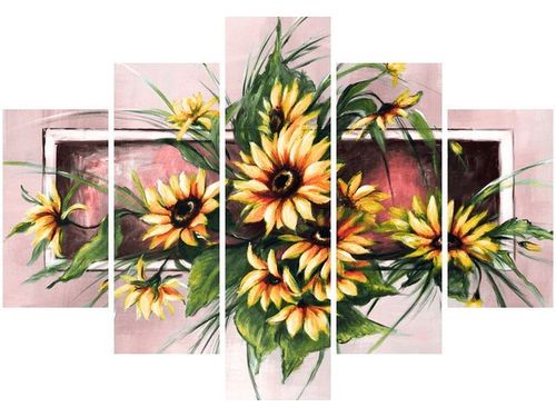 4. Obrazy nie posiadają klasycznej zewnętrznej ramy. Boki obrazu są zadrukowane i płótno jest montowane w taki sposób, że stanowi naturalną kontynuację motywu obrazu. Obrazy wieloelementowe, dzięki temu tworzą jedną całość. Szerokość zadrukowanego boku wynosi tyle samo ile grubość drewnianej ramy czyli 1,6cm.