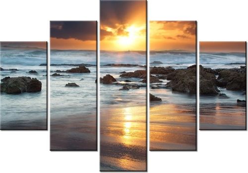 4. Obrazy nie posiadają klasycznej zewnętrznej ramy. Boki obrazu są zadrukowane i płótno jest montowane w taki sposób, że stanowi naturalną kontynuację motywu obrazu. Obrazy wieloelementowe, dzięki temu tworzą jedną całość. Szerokość zadrukowanego boku wynosi tyle samo ile grubość drewnianej ramy czyli 1,6cm.