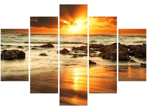 4. Obrazy nie posiadają klasycznej zewnętrznej ramy. Boki obrazu są zadrukowane i płótno jest montowane w taki sposób, że stanowi naturalną kontynuację motywu obrazu. Obrazy wieloelementowe, dzięki temu tworzą jedną całość. Szerokość zadrukowanego boku wynosi tyle samo ile grubość drewnianej ramy czyli 1,6cm.