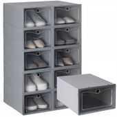 Zestaw ten gwarantuje pełną elastyczność, umożliwiając łączenie pudełek w modułową szafkę dzięki specjalnym zaczepom z przodu i z tyłu. Dodatkowo, czy to w szafie, na półce, czy ustawione na boku dla szpilek z wyższym obcasem, te organizery pozwalają na eksplorację różnych konfiguracji. Ich składana konstrukcja zapewnia trwałość i stabilność, umożliwiając Ci utrzymanie porządku bez ograniczeń.
