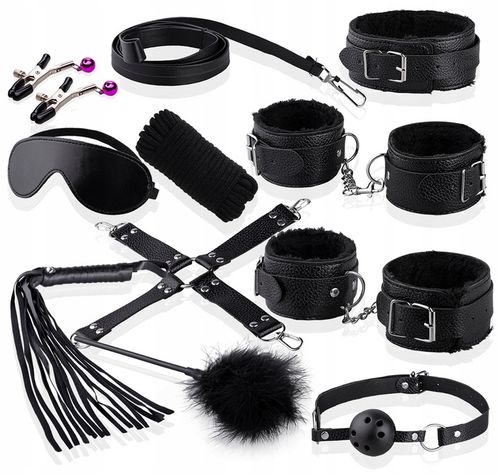 Kompletny zestaw zawiera wszystko, czego potrzebujesz, by zaspokoić nawet najbardziej wyrafinowane gusta. Dzięki akcesoriom takim jak knebel, maska na oczy, pejcz i klipsy na sutki, możesz w pełni kontrolować i stymulować partnera lub poddać się jego woli.