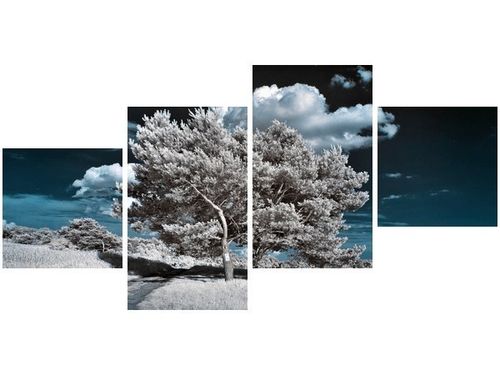 4. Obrazy nie posiadają klasycznej zewnętrznej ramy. Boki obrazu są zadrukowane i płótno jest montowane w taki sposób, że stanowi naturalną kontynuację motywu obrazu. Obrazy wieloelementowe, dzięki temu tworzą jedną całość. Szerokość zadrukowanego boku wynosi tyle samo ile grubość drewnianej ramy czyli 1,6cm.