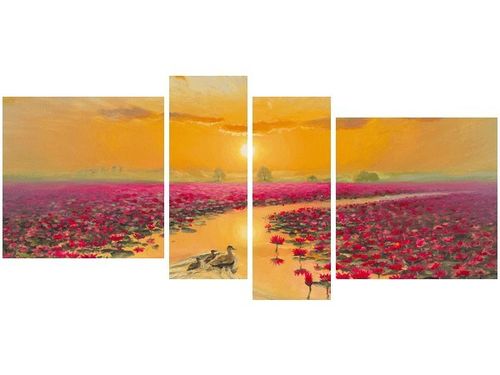 4. Obrazy nie posiadają klasycznej zewnętrznej ramy. Boki obrazu są zadrukowane i płótno jest montowane w taki sposób, że stanowi naturalną kontynuację motywu obrazu. Obrazy wieloelementowe, dzięki temu tworzą jedną całość. Szerokość zadrukowanego boku wynosi tyle samo ile grubość drewnianej ramy czyli 1,6cm.