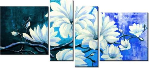4. Obrazy nie posiadają klasycznej zewnętrznej ramy. Boki obrazu są zadrukowane i płótno jest montowane w taki sposób, że stanowi naturalną kontynuację motywu obrazu. Obrazy wieloelementowe, dzięki temu tworzą jedną całość. Szerokość zadrukowanego boku wynosi tyle samo ile grubość drewnianej ramy czyli 1,6cm.