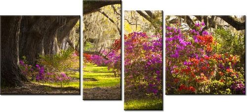 4. Obrazy nie posiadają klasycznej zewnętrznej ramy. Boki obrazu są zadrukowane i płótno jest montowane w taki sposób, że stanowi naturalną kontynuację motywu obrazu. Obrazy wieloelementowe, dzięki temu tworzą jedną całość. Szerokość zadrukowanego boku wynosi tyle samo ile grubość drewnianej ramy czyli 1,6cm.