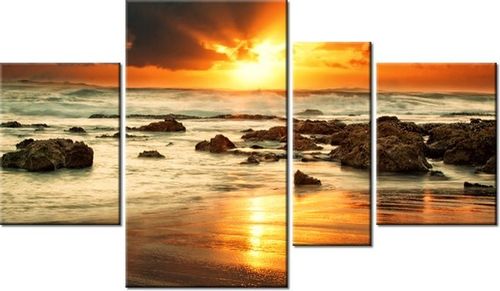4. Obrazy nie posiadają klasycznej zewnętrznej ramy. Boki obrazu są zadrukowane i płótno jest montowane w taki sposób, że stanowi naturalną kontynuację motywu obrazu. Obrazy wieloelementowe, dzięki temu tworzą jedną całość. Szerokość zadrukowanego boku wynosi tyle samo ile grubość drewnianej ramy czyli 1,6cm.