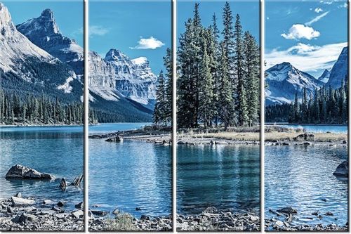 4. Obrazy nie posiadają klasycznej zewnętrznej ramy. Boki obrazu są zadrukowane i płótno jest montowane w taki sposób, że stanowi naturalną kontynuację motywu obrazu. Obrazy wieloelementowe, dzięki temu tworzą jedną całość. Szerokość zadrukowanego boku wynosi tyle samo ile grubość drewnianej ramy czyli 1,6cm.