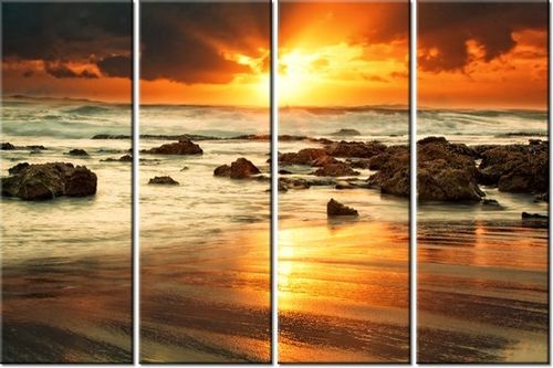 4. Obrazy nie posiadają klasycznej zewnętrznej ramy. Boki obrazu są zadrukowane i płótno jest montowane w taki sposób, że stanowi naturalną kontynuację motywu obrazu. Obrazy wieloelementowe, dzięki temu tworzą jedną całość. Szerokość zadrukowanego boku wynosi tyle samo ile grubość drewnianej ramy czyli 1,6cm.