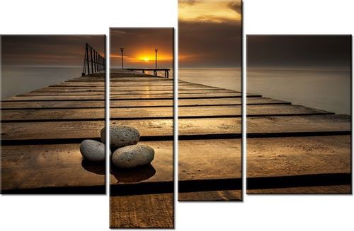 4. Obrazy nie posiadają klasycznej zewnętrznej ramy. Boki obrazu są zadrukowane i płótno jest montowane w taki sposób, że stanowi naturalną kontynuację motywu obrazu. Obrazy wieloelementowe, dzięki temu tworzą jedną całość. Szerokość zadrukowanego boku wynosi tyle samo ile grubość drewnianej ramy czyli 1,6cm.