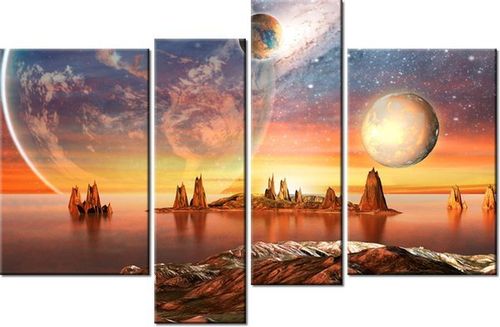 4. Obrazy nie posiadają klasycznej zewnętrznej ramy. Boki obrazu są zadrukowane i płótno jest montowane w taki sposób, że stanowi naturalną kontynuację motywu obrazu. Obrazy wieloelementowe, dzięki temu tworzą jedną całość. Szerokość zadrukowanego boku wynosi tyle samo ile grubość drewnianej ramy czyli 1,6cm.