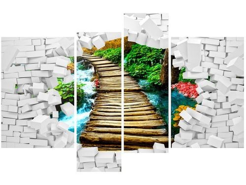 4. Obrazy nie posiadają klasycznej zewnętrznej ramy. Boki obrazu są zadrukowane i płótno jest montowane w taki sposób, że stanowi naturalną kontynuację motywu obrazu. Obrazy wieloelementowe, dzięki temu tworzą jedną całość. Szerokość zadrukowanego boku wynosi tyle samo ile grubość drewnianej ramy czyli 1,6cm.