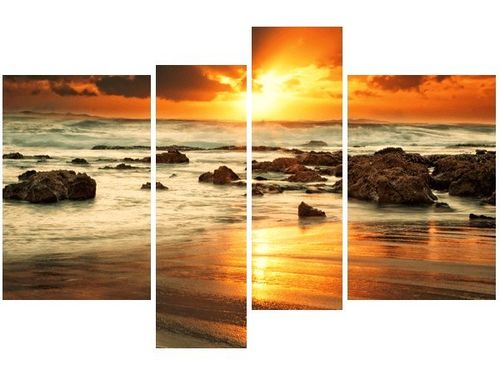 4. Obrazy nie posiadają klasycznej zewnętrznej ramy. Boki obrazu są zadrukowane i płótno jest montowane w taki sposób, że stanowi naturalną kontynuację motywu obrazu. Obrazy wieloelementowe, dzięki temu tworzą jedną całość. Szerokość zadrukowanego boku wynosi tyle samo ile grubość drewnianej ramy czyli 1,6cm.
