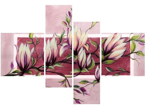 4. Obrazy nie posiadają klasycznej zewnętrznej ramy. Boki obrazu są zadrukowane i płótno jest montowane w taki sposób, że stanowi naturalną kontynuację motywu obrazu. Obrazy wieloelementowe, dzięki temu tworzą jedną całość. Szerokość zadrukowanego boku wynosi tyle samo ile grubość drewnianej ramy czyli 1,6cm.