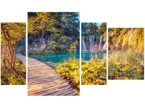 4. Obrazy nie posiadają klasycznej zewnętrznej ramy. Boki obrazu są zadrukowane i płótno jest montowane w taki sposób, że stanowi naturalną kontynuację motywu obrazu. Obrazy wieloelementowe, dzięki temu tworzą jedną całość. Szerokość zadrukowanego boku wynosi tyle samo ile grubość drewnianej ramy czyli 1,6cm.