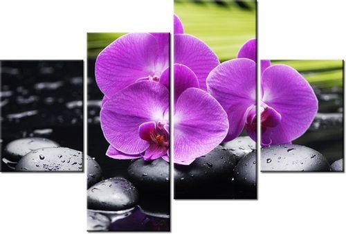 4. Obrazy nie posiadają klasycznej zewnętrznej ramy. Boki obrazu są zadrukowane i płótno jest montowane w taki sposób, że stanowi naturalną kontynuację motywu obrazu. Obrazy wieloelementowe, dzięki temu tworzą jedną całość. Szerokość zadrukowanego boku wynosi tyle samo ile grubość drewnianej ramy czyli 1,6cm.
