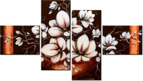 4. Obrazy nie posiadają klasycznej zewnętrznej ramy. Boki obrazu są zadrukowane i płótno jest montowane w taki sposób, że stanowi naturalną kontynuację motywu obrazu. Obrazy wieloelementowe, dzięki temu tworzą jedną całość. Szerokość zadrukowanego boku wynosi tyle samo ile grubość drewnianej ramy czyli 1,6cm.