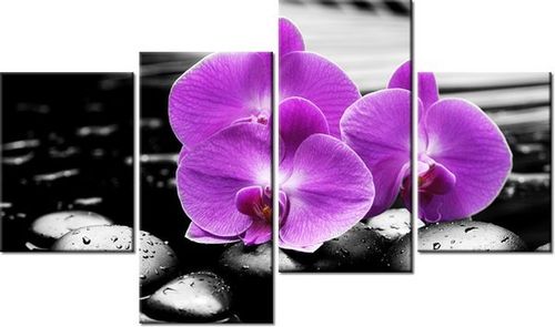 4. Obrazy nie posiadają klasycznej zewnętrznej ramy. Boki obrazu są zadrukowane i płótno jest montowane w taki sposób, że stanowi naturalną kontynuację motywu obrazu. Obrazy wieloelementowe, dzięki temu tworzą jedną całość. Szerokość zadrukowanego boku wynosi tyle samo ile grubość drewnianej ramy czyli 1,6cm.