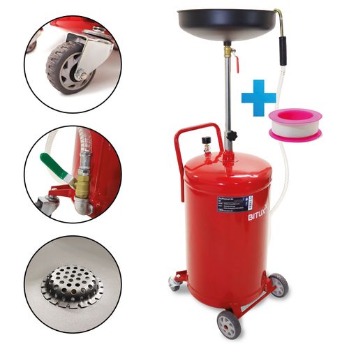 Niezbędna w każdym warsztacie zlewarka do zlewania wszelkich płynów. Dzięki dużej pojemności (80L) oraz opróżnianiu sprężonym powietrzem użytkownik jest w stanie szybko oraz bezpiecznie dla środowiska wymienić olej. Samojezdne koła ułatwiają sprawne manewrowanie i przemieszczanie zlewarki.