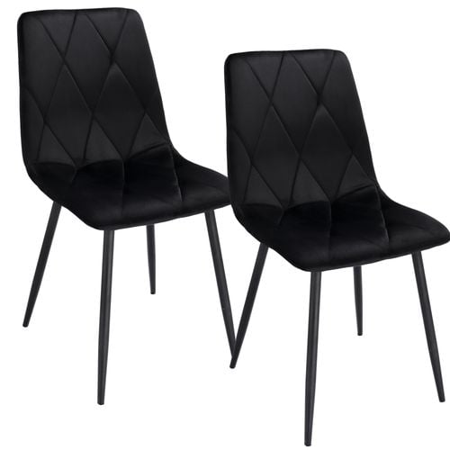 Krzesło tapicerowane jest welurem, a po wewnętrznej stronie pikowane regularnymi przeszyciami w romby. Wysokie i smukłe nóżki w czarnym kolorze wyglądają bardzo szykownie oraz gwarantują idealną stabilność.