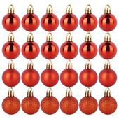 Zestaw 24 szt. bombek na choinkę - Zestaw 24 bombek w kolorze czerwonym, które dodadzą klasycznego blasku każdej choince i stworzą magiczną atmosferę w domu. W zestawie bombki: 6x matowe, 12x błyszczące i 6x brokatowe o średnicy 3 cm, które urozmaicą dekoracje na choince.