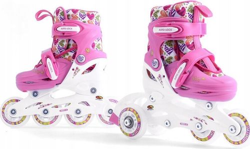 Te wysokiej jakości wrotko-rolki Combo Hearts zostały zaprojektowane z myślą o bezpieczeństwie i wygodzie Twojego dziecka. Wykonane z trwałego tworzywa ABS i wyposażone w kauczukowe kółka o średnicy 64 x 24 mm, gwarantują stabilną i płynną jazdę na różnych nawierzchniach.