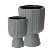 Doniczka okrągła Keli Mika 30 i 40 na nóżce - Platyna to idealne rozwiązanie dla miłośników roślin oraz eleganckiego wystroju wnętrz. W zestawie znajdują się dwie doniczki o różnych rozmiarach, które nie tylko wprowadzą harmonię do Twojego otoczenia, ale również pozwolą Ci na kreatywne aranżacje z roślinami. Zmieni one oblicze Twojego domu, tarasu czy balkonu, dodając im wyjątkowego charakteru.